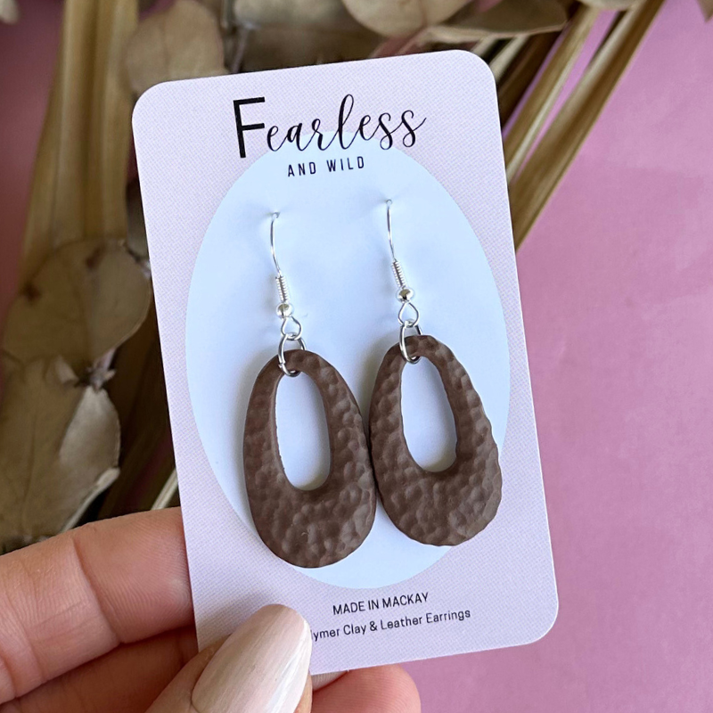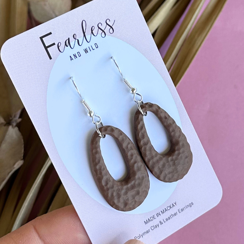 Alina Cocoa is for those that want a classic shape in a staple colour way. A simple oval shape with a dimple texture make these handmade earrings perfect for the office, drinks or even your friends wedding.