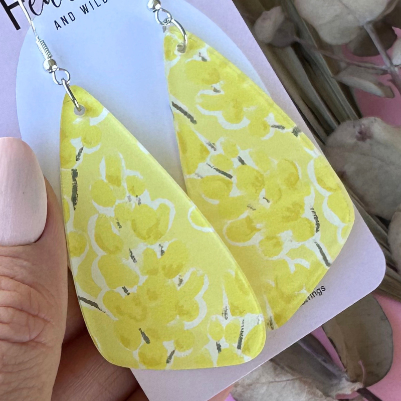 Say hello to Amber, our bold yet playful yellow wattle abstract design. With its oversized organic shape and vibrant golden hue, this piece is the perfect blend of statement and sophistication. Designed to turn heads, Amber brings effortless edge to any look.