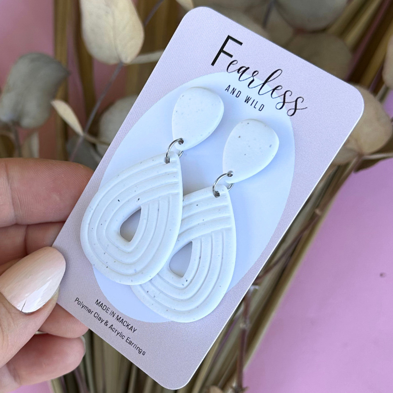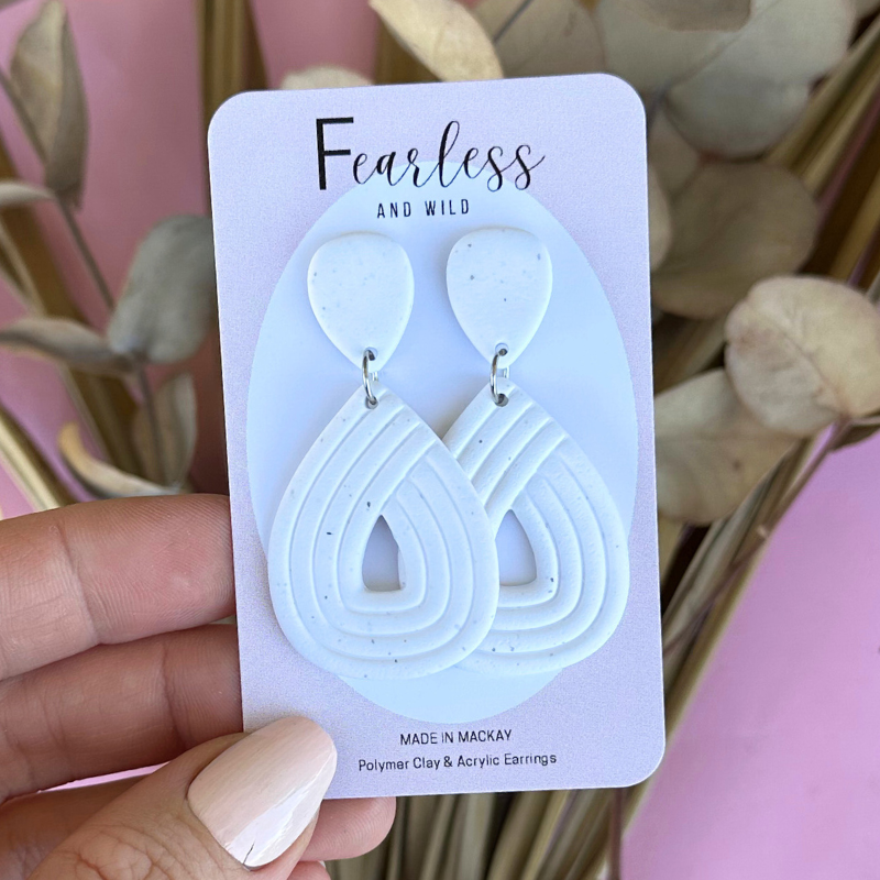 Charlie White is a new design that boosts boldness yet has not forgotten about the curves we love. She can be worn day or night and is all about making you feel fab and wonderful. These classic White handmade earrings are sure to be the versatile colour you are looking for this season.