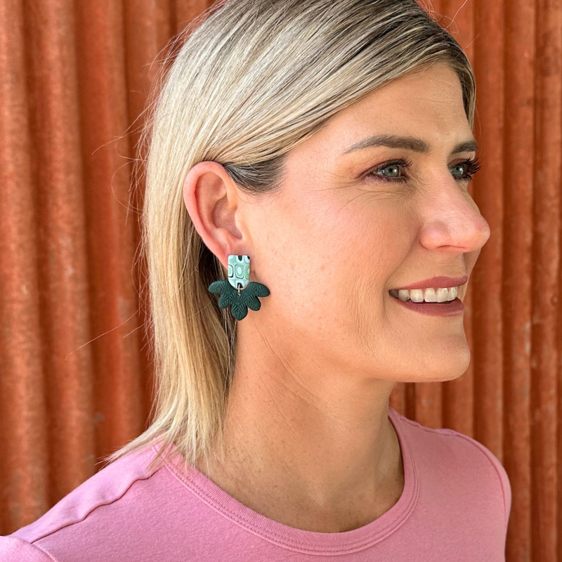 Love a statement earring? Meet the new Clara Forest Green! This shorter length beauty flatters with her delicate floral shape and soothing blue and forest green tones. Perfectly feminine and effortlessly stylish, she’s sure to have your friends swooning over your gorgeous new look.