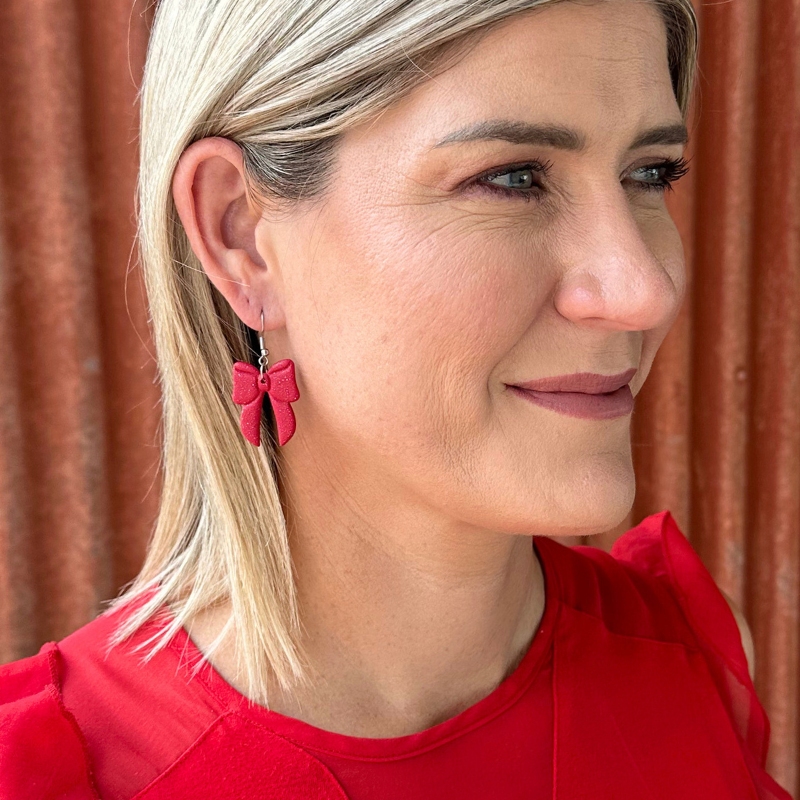 Love a feminine touch? Cleo Red is just that with her bow shape in this years must have colour, Red with a fun glitter sparkle. Cleo is lightweight and easy to wear, she’s perfect for everyday style and versatility.