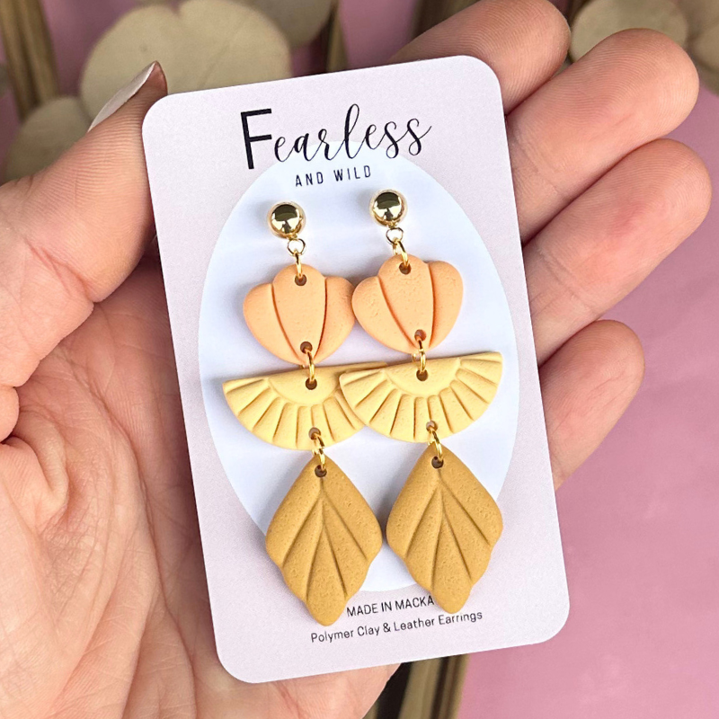 Fearless and Wild earrings are handmade in Mackay Queensland. Each pair is made with love just for you. Remember handmade means each pair is perfectly imperfect. Our earrings shares a story like you and me meaning differences in shade, colours, textures and slight imperfection here and there- this ensures each pair are unique.
