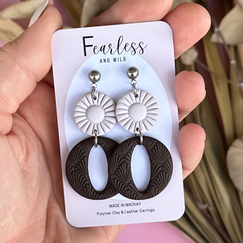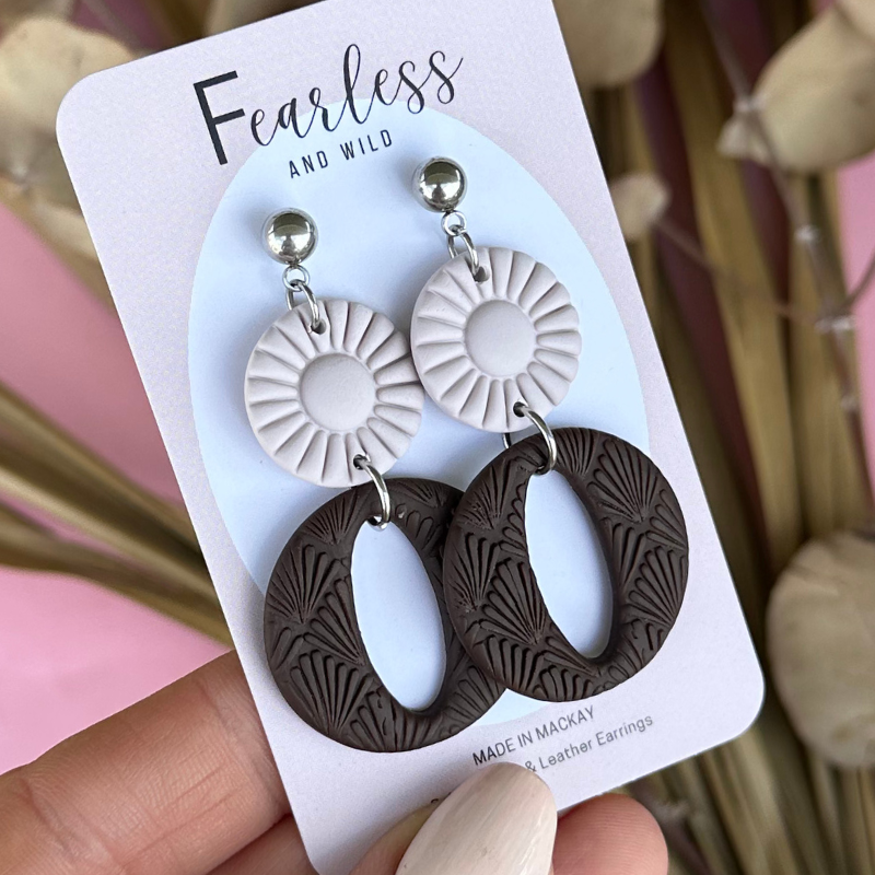 Fearless and Wild earrings are handmade in Mackay Queensland. Each pair is made with love just for you. Remember handmade means each pair is perfectly imperfect. Our earrings shares a story like you and me meaning differences in shade, colours, textures and slight imperfection here and there- this ensures each pair are unique.