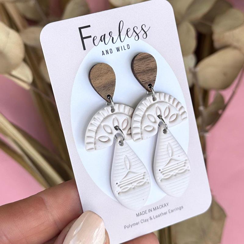 Fearless and Wild earrings are handmade in Mackay Queensland. Each pair is made with love just for you. Remember handmade means each pair is perfectly imperfect. Our earrings shares a story like you and me meaning differences in shade, colours, textures and slight imperfection here and there- this ensures each pair are unique.