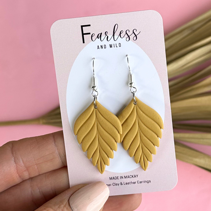 Lil Mustard is your go-to for easy style. With a leaf-inspired design with the perfect amount of swing, these lightweight handmade clay earrings bring a natural touch to any outfit—day or night.