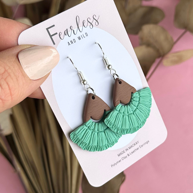 Fearless and Wild earrings are handmade in Mackay Queensland. Each pair is made with love just for you. Remember handmade means each pair is perfectly imperfect. Our earrings shares a story like you and me meaning differences in shade, colours, textures and slight imperfection here and there- this ensures each pair are unique.