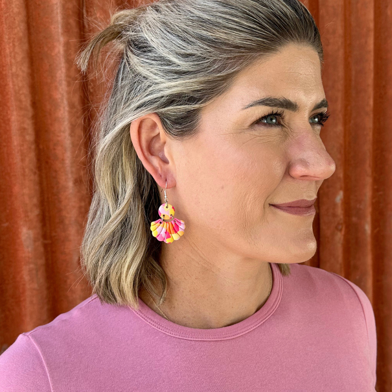 Nova Spring Crush is an absolute show stopper. These vibrant hot pink, yellow and orange are perfect for adding a pop of colour to any outfit. These longer length handmade earrings are sure to become a favourite in your collection like they have mine.