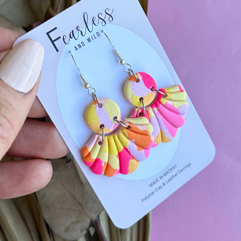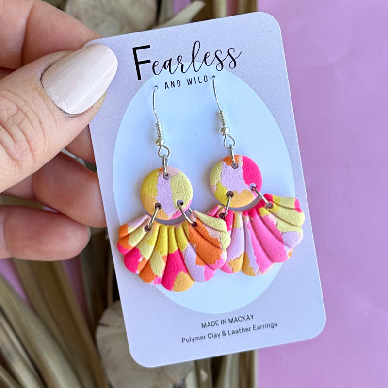 Fearless and Wild earrings are handmade in Mackay Queensland. Each pair is made with love just for you. Remember handmade means each pair is perfectly imperfect. Our earrings shares a story like you and me meaning differences in shade, colours, textures and slight imperfection here and there- this ensures each pair are unique.