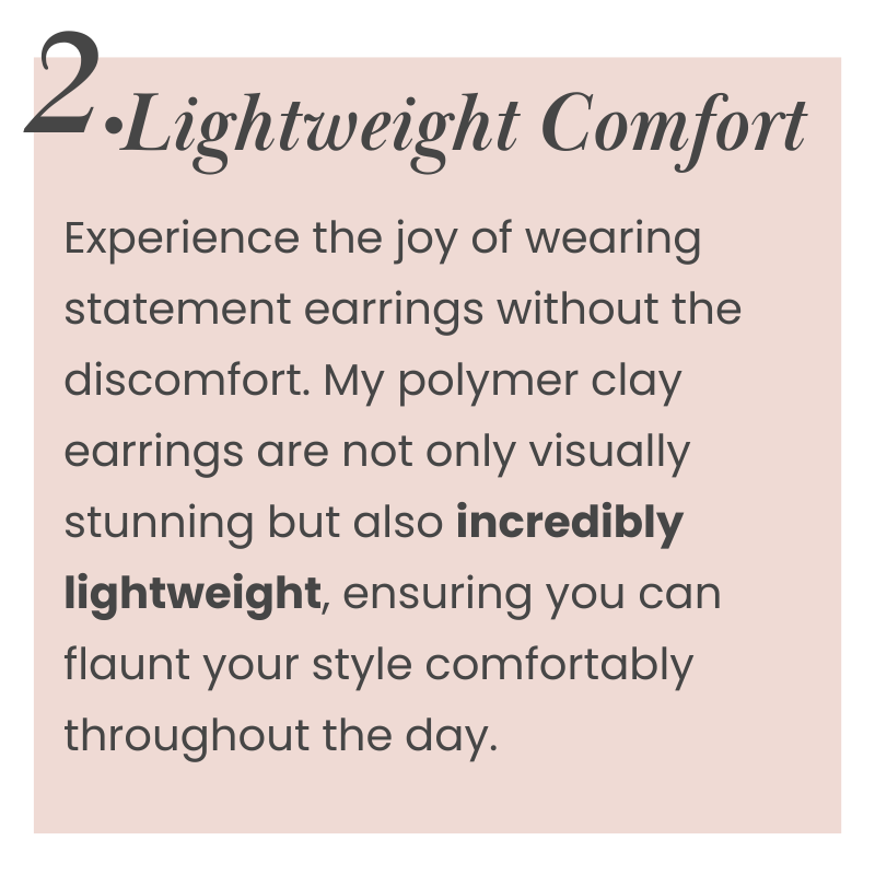 What we love about polymer clay earrings - They are lightweight, durable and non toxic. You will forget you are even wearing earrings, which means say goodbye to sore lobes and say hello to amazing bespoke style!