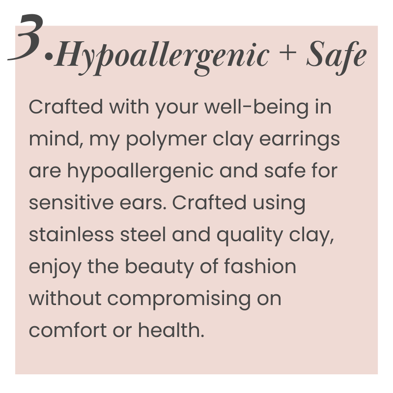 Polymer clay earrings are lightweight and so easy to wear. Every pair is crafted with hypoallergenic stainless steel posts and quality clay.