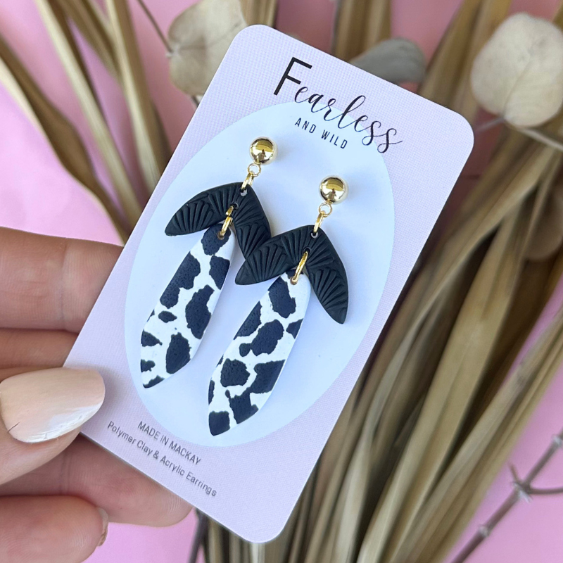 Fearless and Wild earrings are handmade in Mackay Queensland. Each pair is made with love just for you. Remember handmade means each pair is perfectly imperfect. Our earrings shares a story like you and me meaning differences in shade, colours, textures and slight imperfection here and there- this ensures each pair are unique.