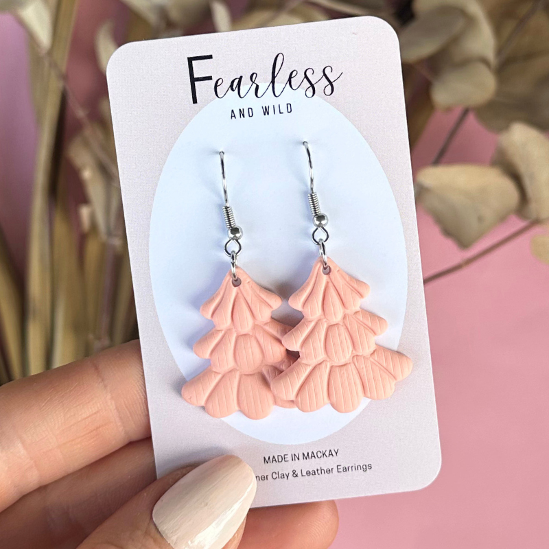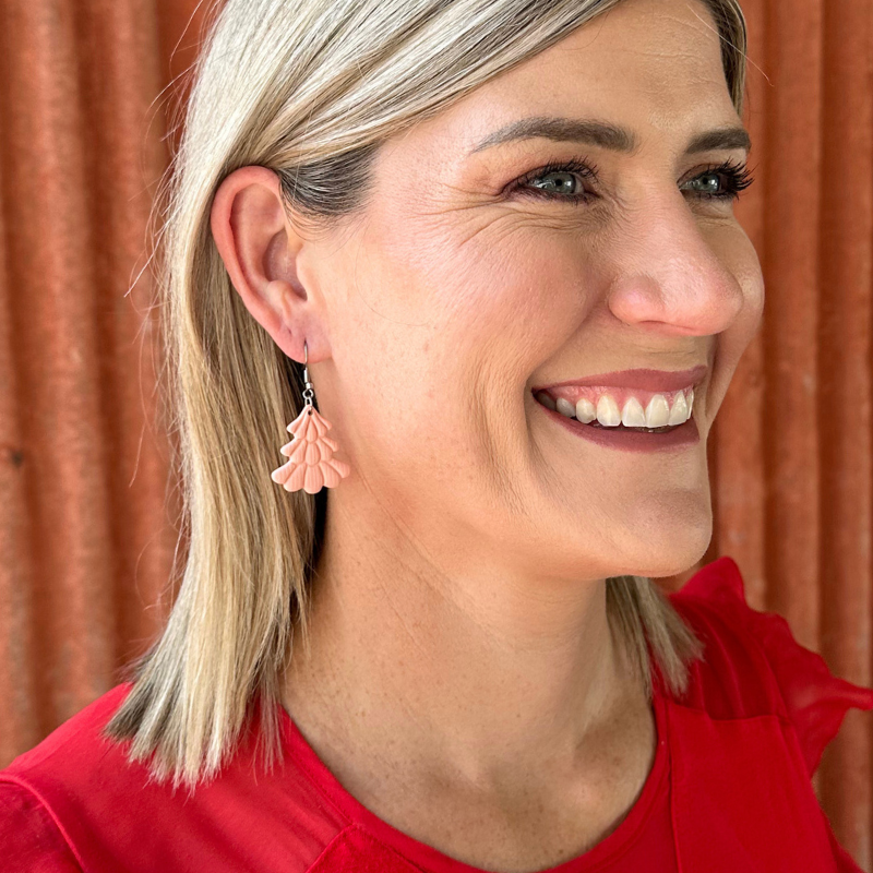 Meet this years fun Peach Tree earrings. Shaped like charming Christmas trees, these lightweight beauties blend Christmas spirit with everyday style. Handcrafted to be comfortable and effortlessly chic, they’re perfect for adding a subtle festive sparkle.